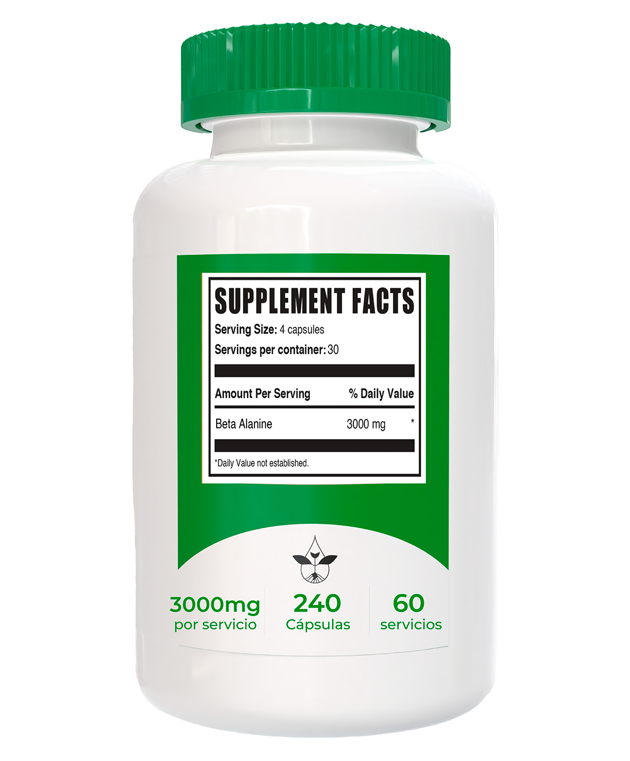 La beta alanina es un aminoácido que apoya el sistema nervioso y promueve la salud del cerebro. También ayuda a desarrollar masa muscular magra y maximiza la resistencia al tiempo que disminuye la fatiga y mejora el tiempo de recuperación. Además, tiene propiedades bloqueadoras de grasa y puede ayudar a promover un peso saludable. La beta alanina es un componente natural de la carne y el pescado, por lo que el cuerpo la absorbe fácilmente.