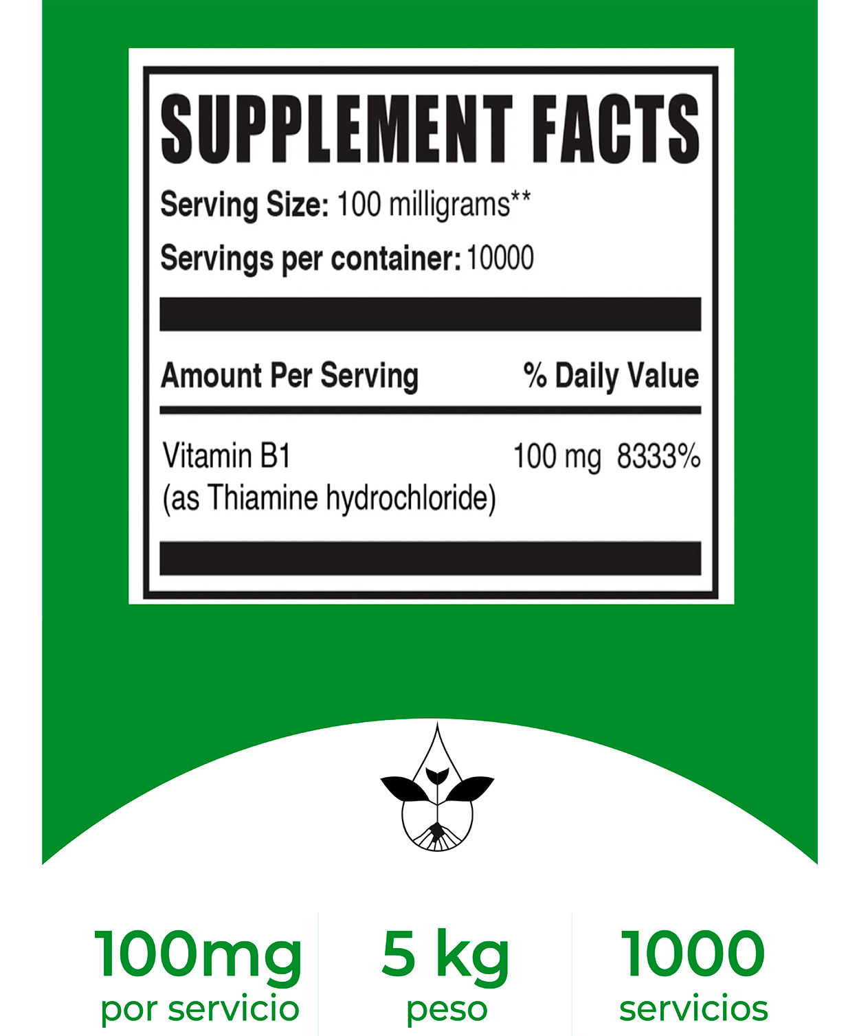 BulkSupplements Tiamina HCl (Vitamina B1) desempeña un papel en el apoyo a las funciones metabólicas, promueve la salud de los ojos, apoya la salud del corazón, ayuda en la función renal, fortalece el sistema nervioso y ayuda con la función cognitiva y la memoria. También es beneficioso para ayudar con la recuperación del ejercicio. Este producto está formulado para ser de grado farmacéutico y se ha probado su pureza y calidad.