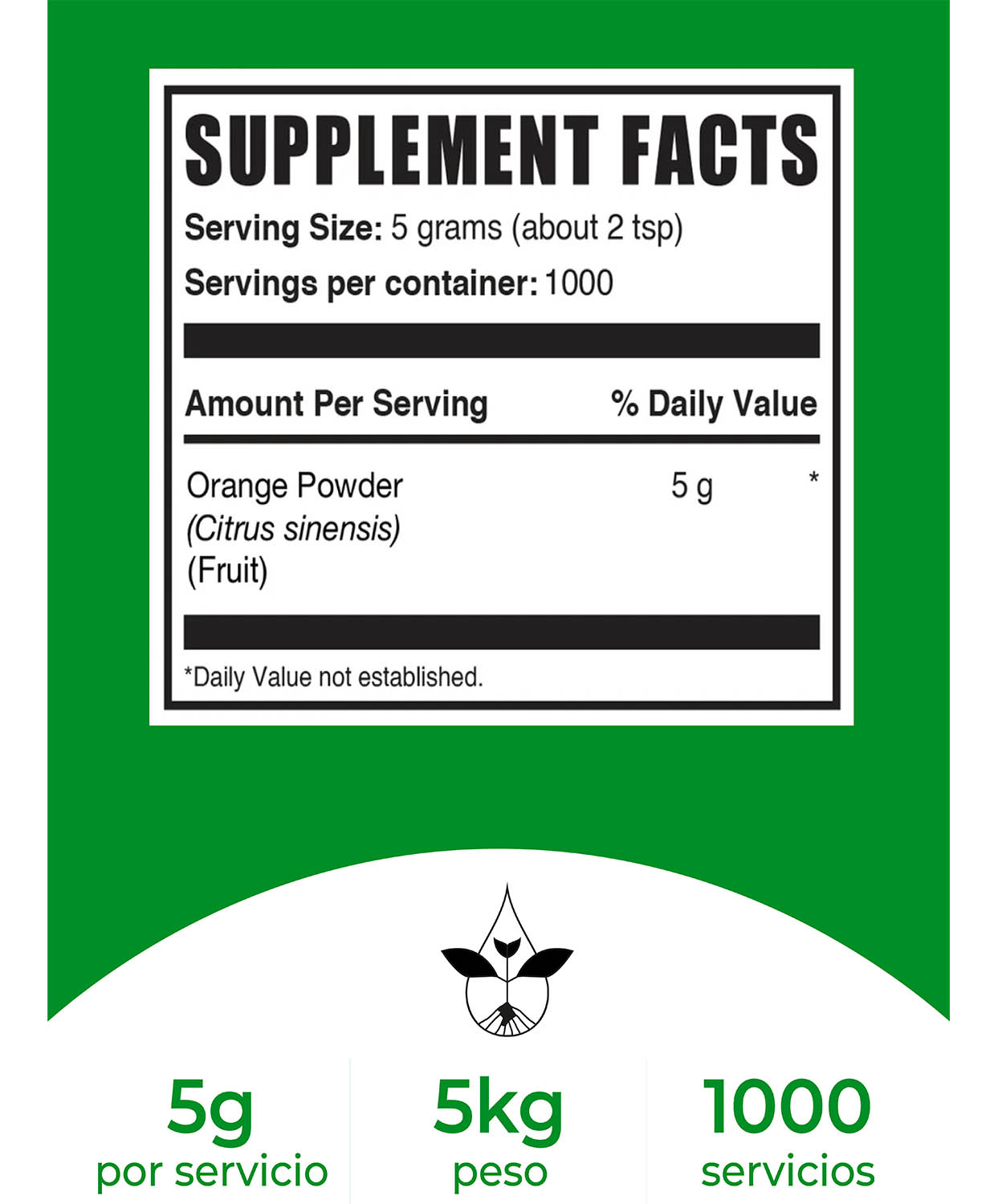 Mejore su nutrición con nuestro polvo de naranja, una explosión de beneficios para la salud de alto impacto convenientemente empaquetada en una sola porción. Repleto de vitaminas esenciales: A, C, E y una variedad de vitaminas B, junto con minerales vitales como potasio, magnesio y calcio, este polvo versátil hace un esfuerzo adicional para satisfacer las necesidades nutricionales de su cuerpo. Ya sea que lo mezcles con tu batido matutino o con tus recetas favoritas, ¡el polvo de naranja hace que la buena salud sea fácil!