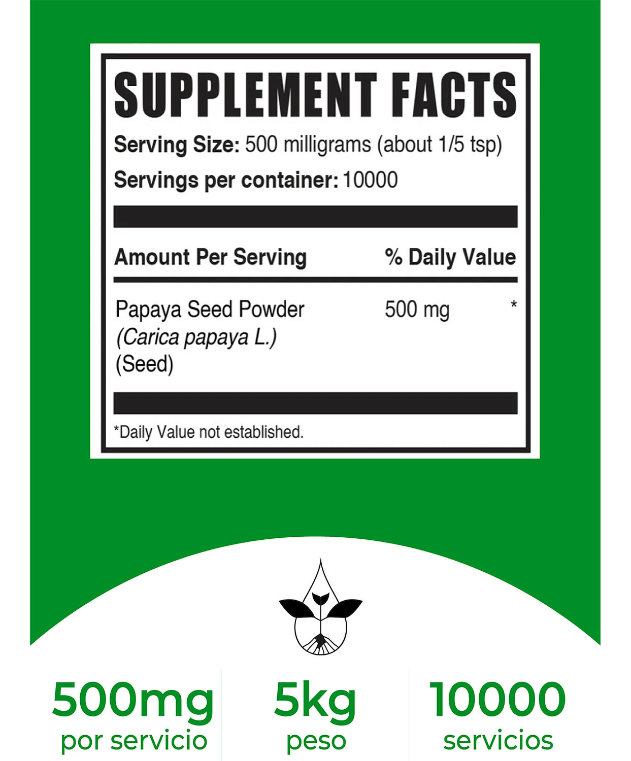 Salud digestiva: el polvo de semilla de papaya contiene enzimas como la papaína, que pueden ayudar en la digestión y ayudar con la hinchazón.