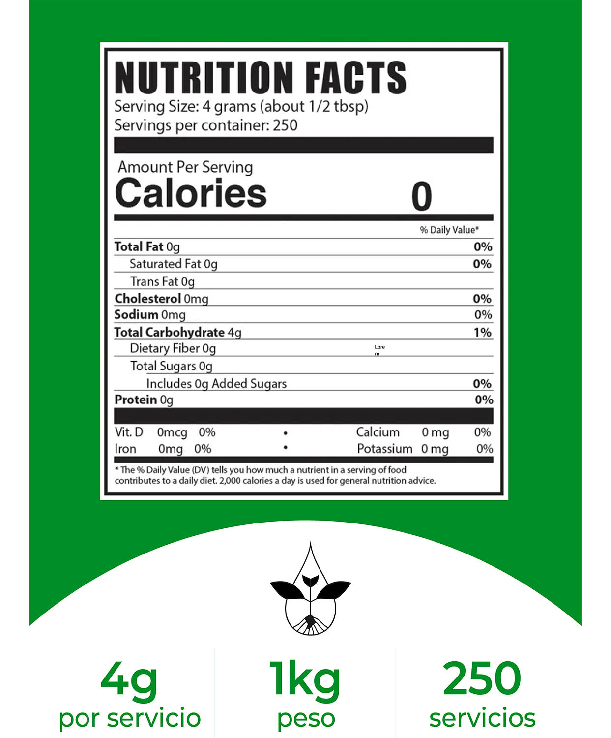 Uso sugerido: Como edulcorante, use 4g (aproximadamente 1/2 cucharada), o al gusto