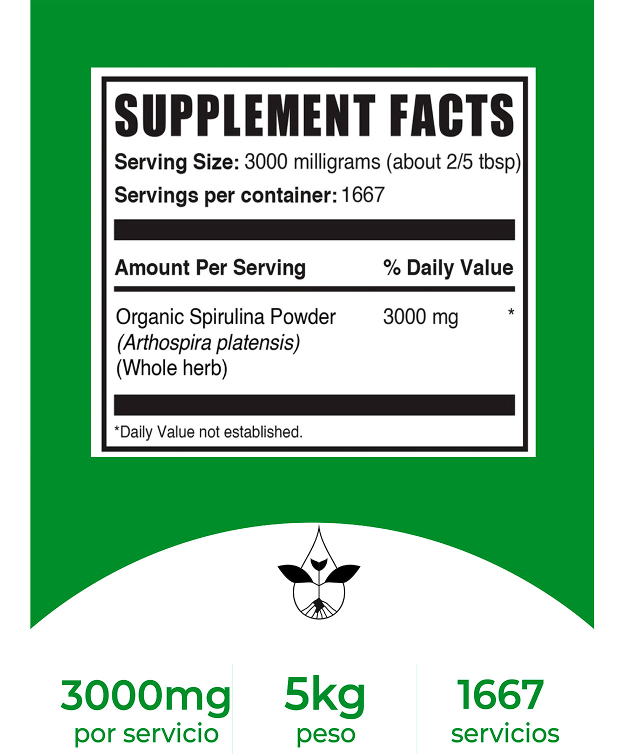 La espirulina en polvo es uno de los alimentos más ricos en nutrientes del planeta y está cargado de vitaminas y minerales como betacaroteno, vitamina B12, hierro, magnesio y más. Contiene 19 de los 22 aminoácidos que el cuerpo necesita y tiene casi un 70% de proteína en peso, más que la carne de res. La espirulina en polvo es rica en antioxidantes y tiene propiedades antiinflamatorias naturales. También apoya la función cardiovascular y es saludable para el corazón.