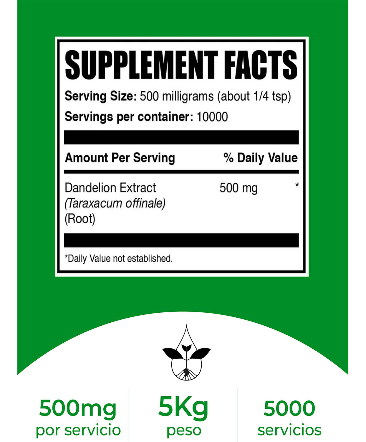 Uso sugerido: Como suplemento dietético, tomar 500 mg (aproximadamente 1/5 cucharadita) una o dos veces al día, o según las indicaciones de un médico.