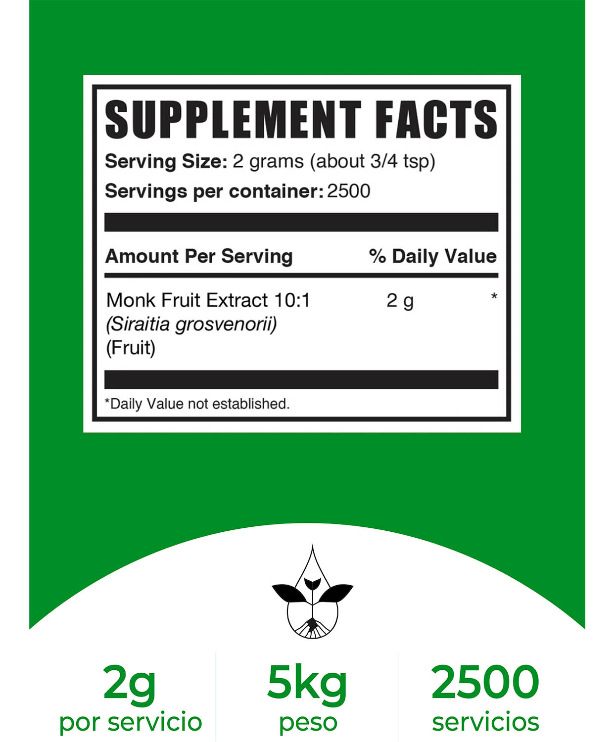 Uso sugerido: Como suplemento dietético, tomar 2 g (aproximadamente 3/4 cucharadita) una vez al día, o según las indicaciones de un médico.