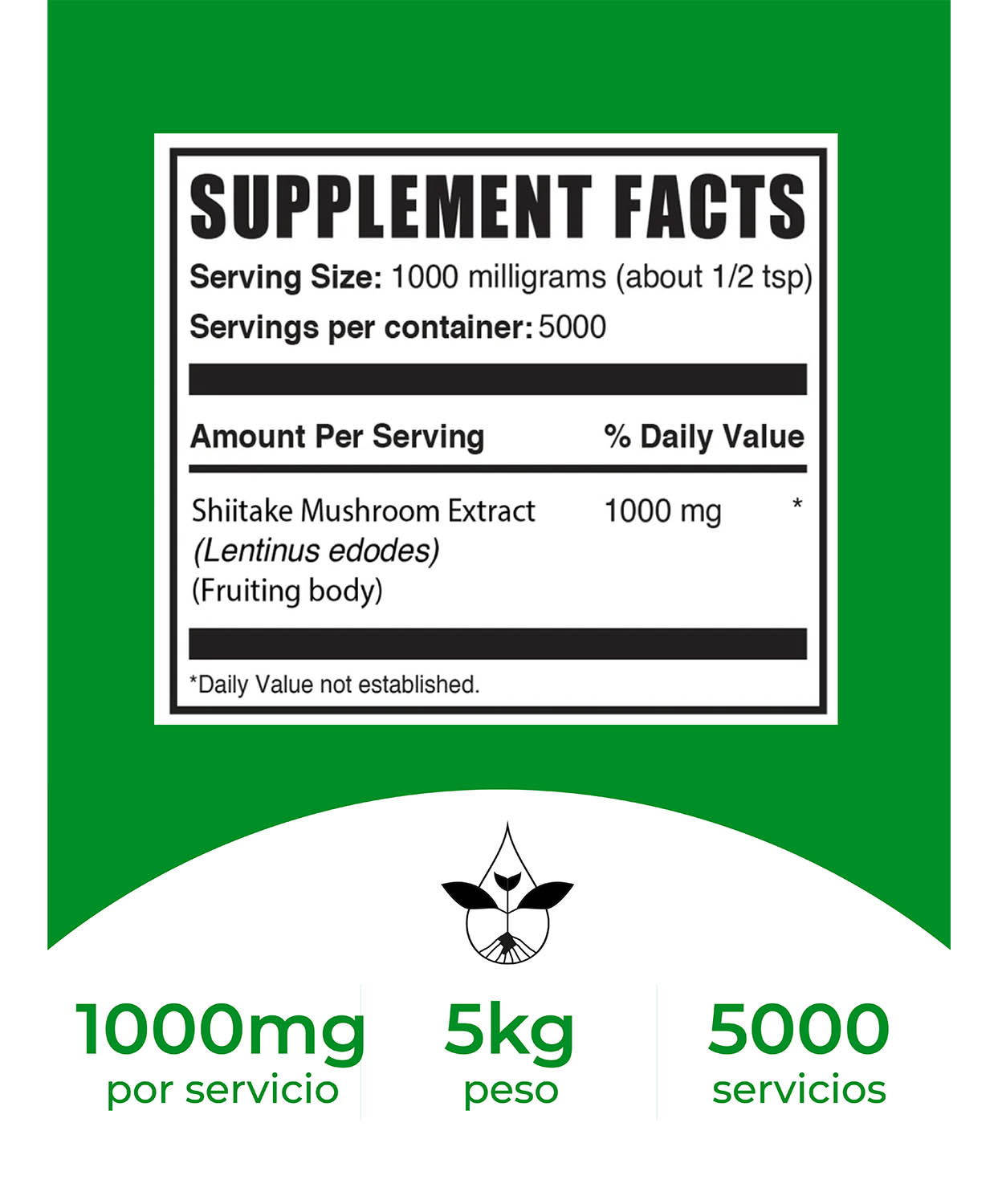 Control de peso: los hongos shiitake son bajos en calorías y grasas, lo que los convierte en un complemento nutritivo para una dieta de control de peso. También pueden ayudar a promover la saciedad debido a su contenido de fibra.