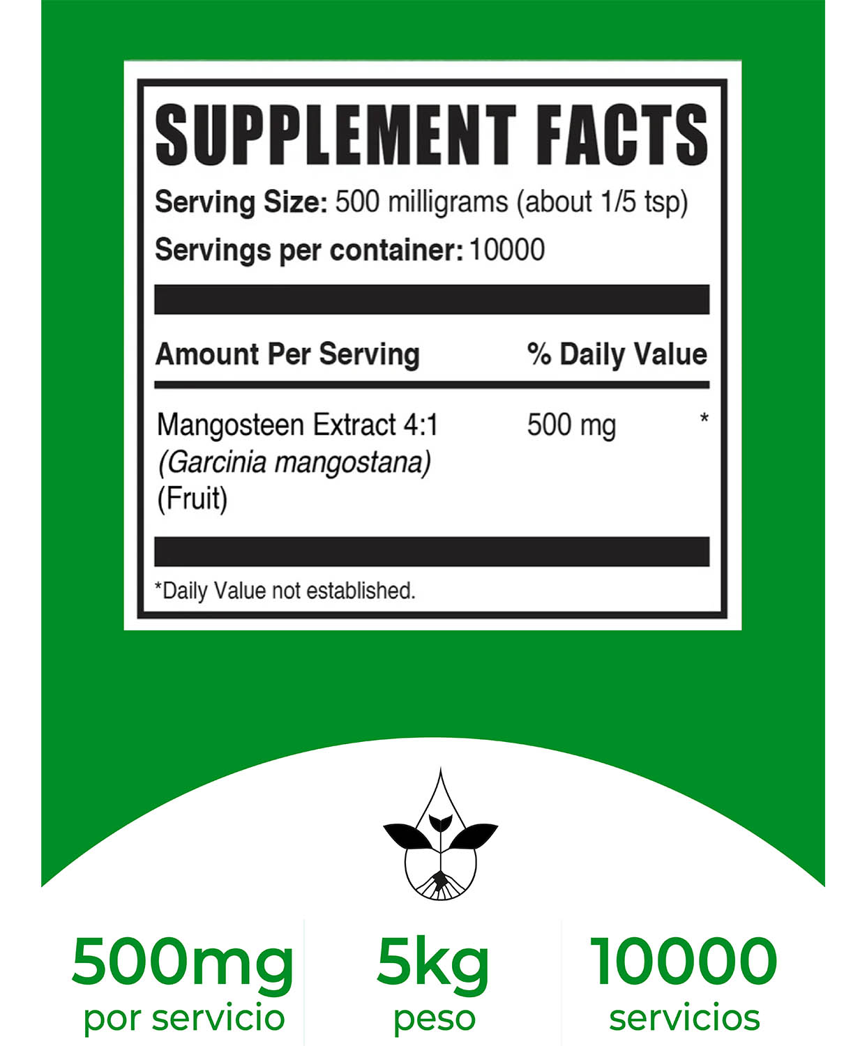 El polvo de mangostán ( Garcinia mangostana ) es rico en antioxidantes y contiene xantonas, que tienen una amplia variedad de beneficios para la salud. También está cargado de vitaminas y minerales. El polvo de mangostán puede ayudar a fortalecer las articulaciones. Apoya la función metabólica, promueve la salud del corazón, contribuye a una piel sana y apoya al cerebro. El mangostán también puede ayudar a la digestión y ayudar a mantener niveles saludables de glucosa en personas que ya están sanas.