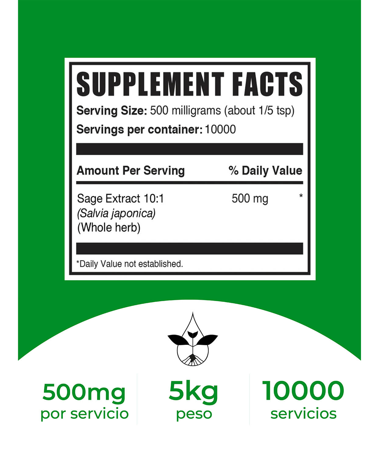 Salud digestiva: el extracto de salvia puede ayudar en la digestión y promover la salud gastrointestinal al calmar la inflamación en el tracto digestivo y apoyar la flora intestinal saludable.