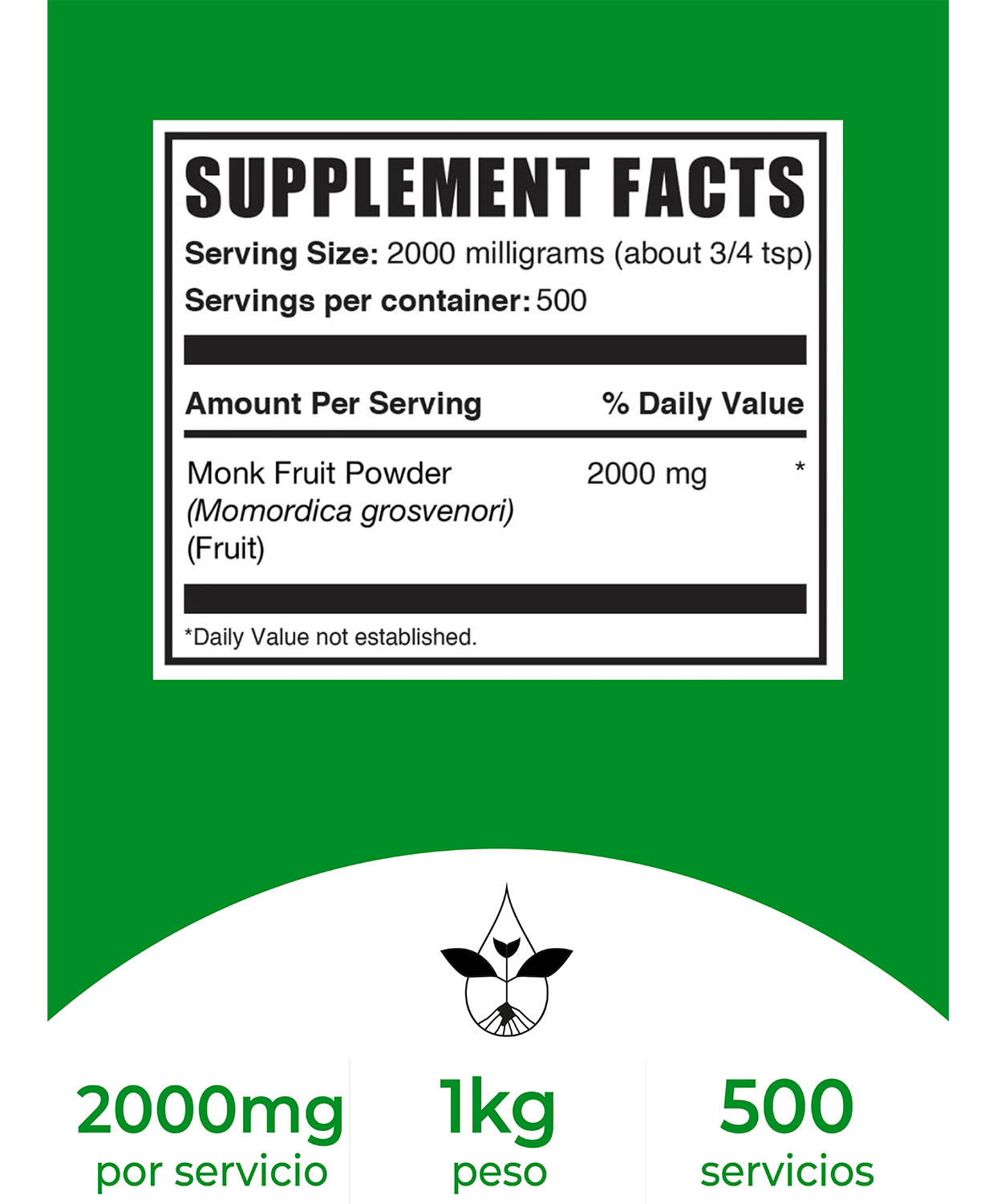Uso sugerido: Como suplemento dietético, tomar 2 g (aproximadamente 3/4 cucharadita) una vez al día, o según las indicaciones de un médico.