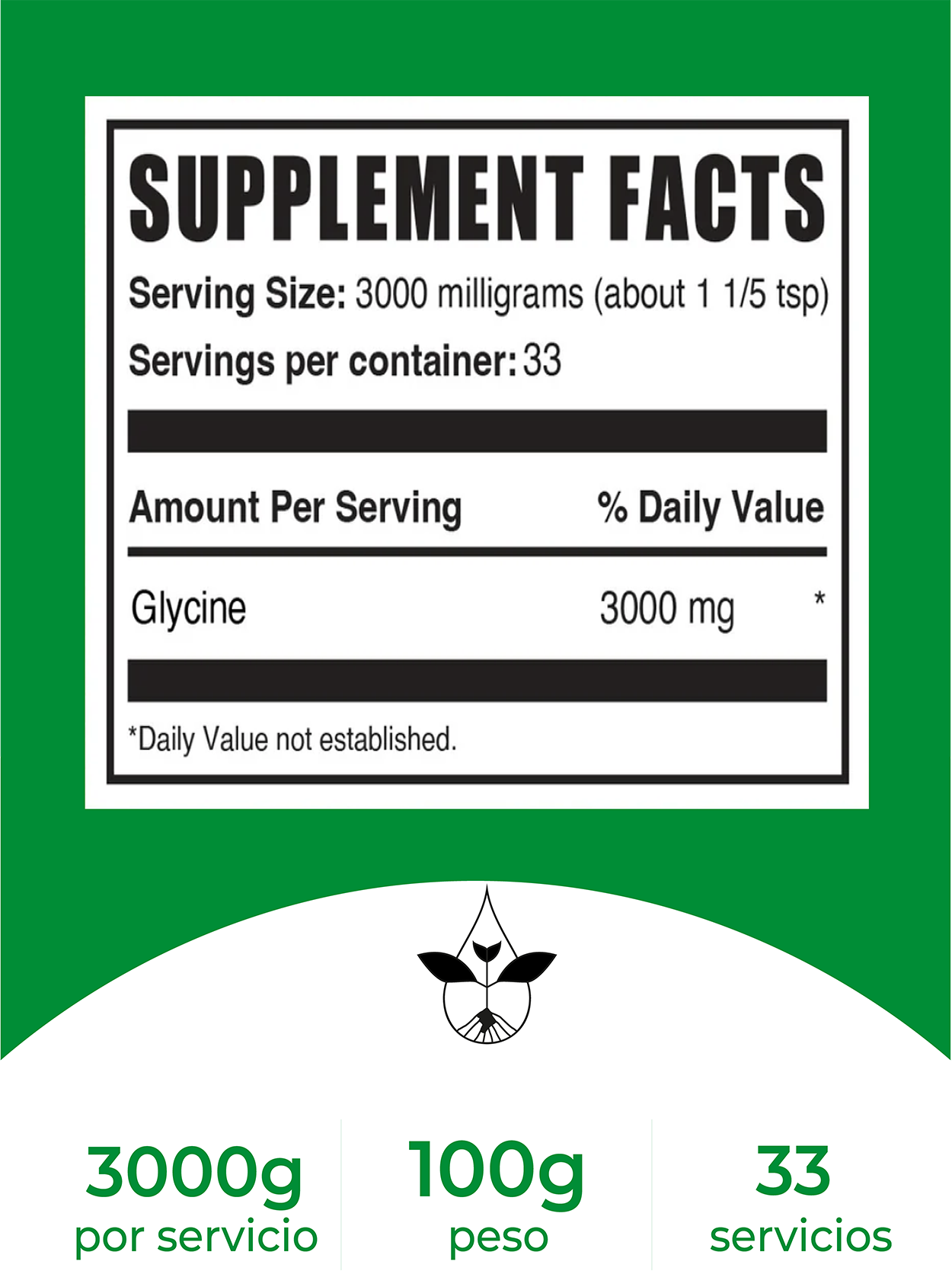 La glicina es un aminoácido vital para que el cuerpo produzca proteínas. Desempeña un papel importante en la salud de los músculos, promueve un sueño saludable y contribuye a un estado de ánimo saludable y una sensación general de bienestar. La glicina también es un antioxidante que favorece la salud del corazón y la circulación, fortalece el hígado y fortalece las articulaciones. Además, puede beneficiar la salud y el bienestar general al ayudar a tonificar la piel.