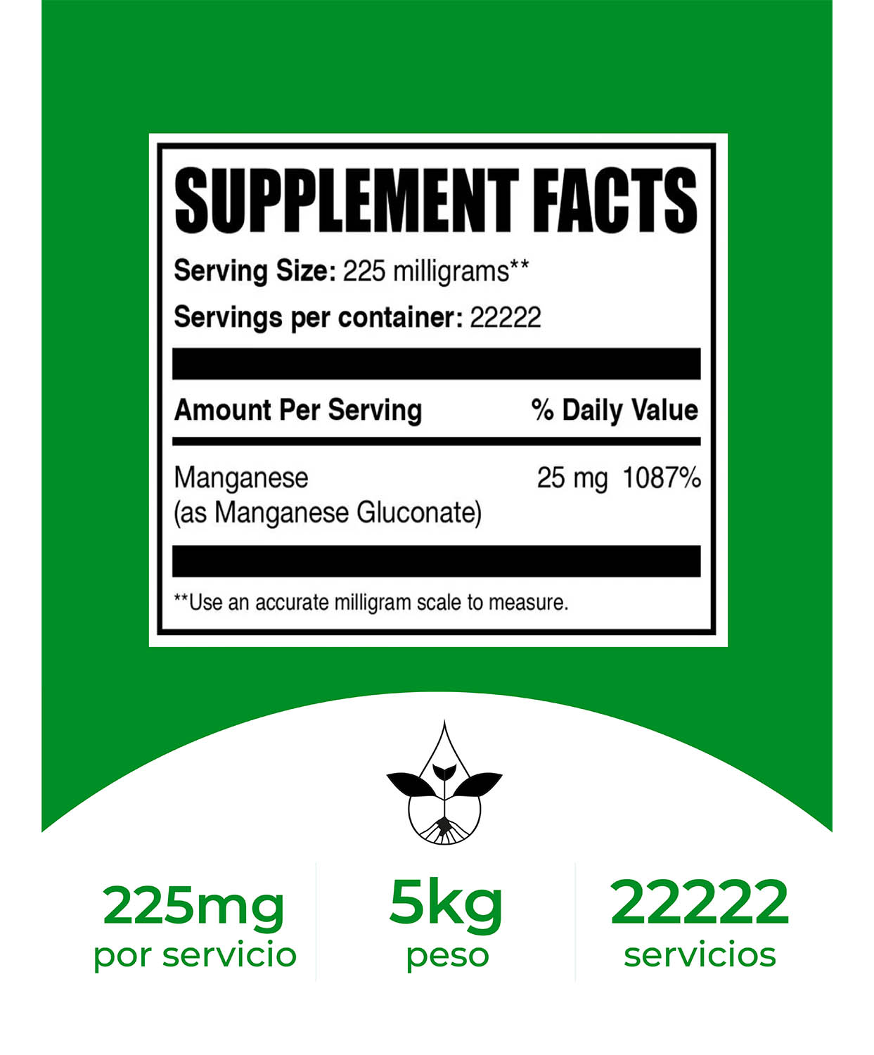 El cuerpo utiliza el gluconato de manganeso para metabolizar grasas y proteínas. Puede apoyar las articulaciones y también tiene propiedades antioxidantes. El gluconato de manganeso puede ayudar a la función cerebral y nerviosa, además de ayudar a respaldar la función inmune y fortalecer los huesos. El gluconato de manganeso actúa para favorecer la fuerza, la masa muscular y la producción de colágeno. El gluconato de manganeso también puede promover la salud cardiovascular y cardíaca. Además, promueve la función saludable de la tiroides y contribuye a una piel sana. El manganeso ayuda en la absorción de la vitamina B1 y la vitamina E y puede funcionar mejor cuando se toma junto con la vitamina B.