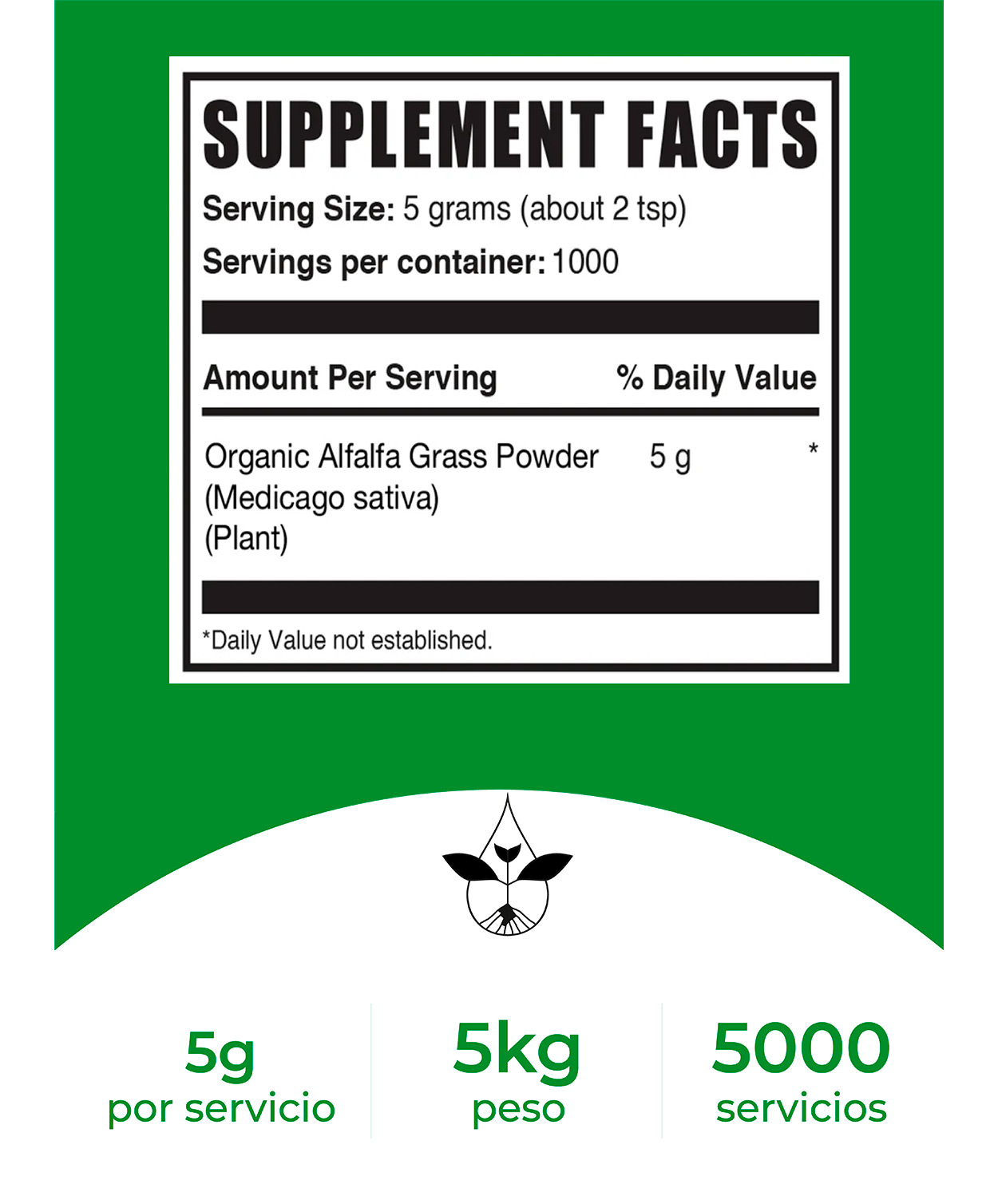 Uso sugerido: Como suplemento dietético, tomar 5 gramos (aproximadamente 2 cucharaditas) una vez al día, o según las indicaciones de un médico.