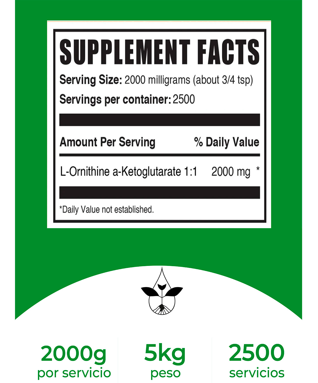 Uso sugerido: Como suplemento dietético, tomar 2000 mg (aproximadamente 3/4 cucharadita) una vez al día, o según las indicaciones de un médico.