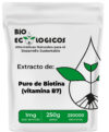 BulkSupplements Pure Biotin es una vitamina soluble en agua que forma parte del complejo B. Es responsable de mantener la salud del cabello, la piel y las uñas, además de mantener niveles saludables de glucosa y fortalecer el cerebro. Además, la biotina contribuye a la salud cardiovascular y apoya la capacidad cognitiva y el estado de ánimo. En general, esta vitamina juega un papel importante en la promoción de la salud y el bienestar general.