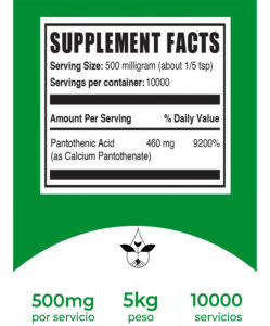 BulkSupplements Vitamina B5 Ácido pantoténico/pantotenato de calcio ofrece una variedad de beneficios para la salud y el bienestar general. La fórmula respalda la función cardíaca y cardiovascular, proporciona energía, promueve un estado de ánimo saludable, respalda una piel sana, promueve el crecimiento saludable del cabello, fortalece las articulaciones y ayuda a la función cerebral saludable. El ácido pantoténico y el pantotenato de calcio de la fórmula ayudan a garantizar una absorción óptima de la vitamina B5.